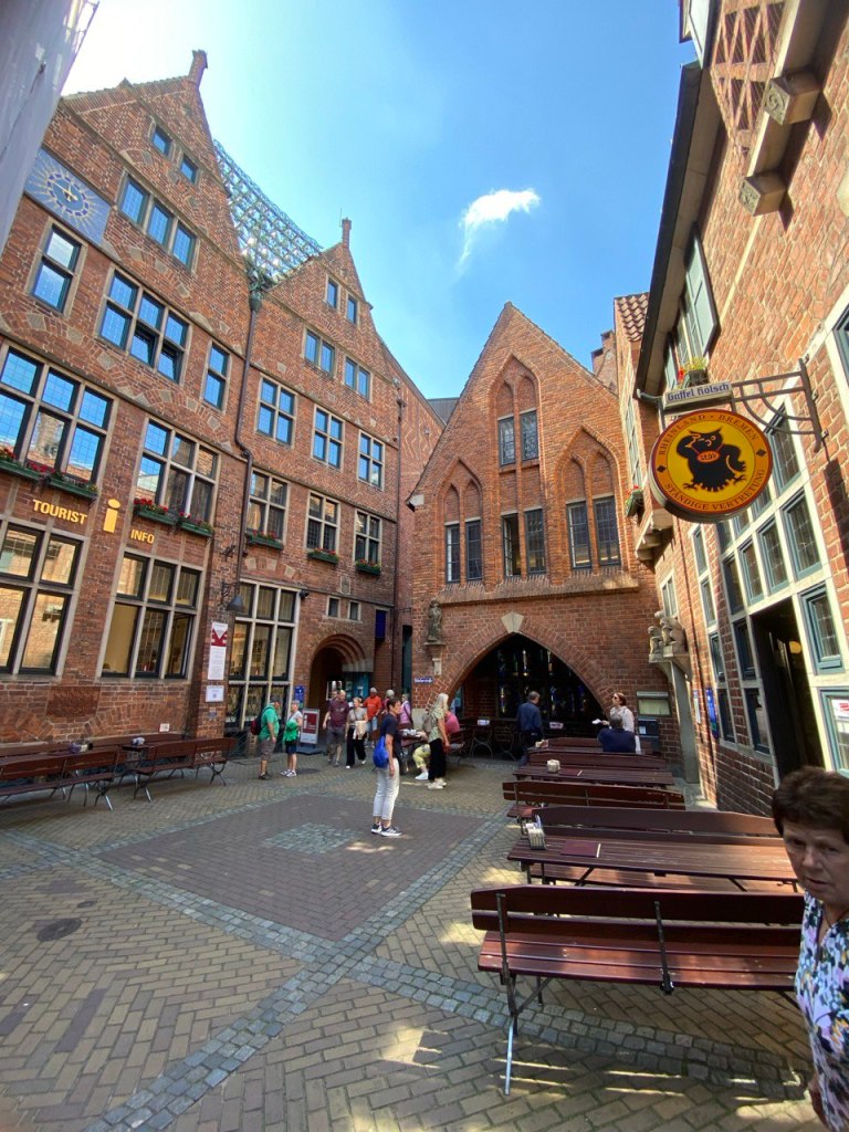 The Schnoor Quarter is Bremen’s oldest district, dating back to the 15th century. Its name comes from the old German word “Schnoor” (string) and refers to the way how close houses are to each other, just like pearls in a string.